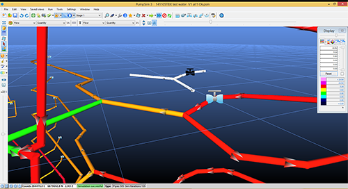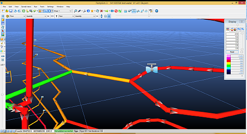 Hint: Pumpsim™ can detect whether an object being constructed crosses the paths of other objects. For example, if a long pipe is drawn from one point to another, over which it crosses the paths of existing pipes, Pumpsim™ will join this object into the crossed pipes with new nodes. This will only happen in the drawing mode. If objects are imported (from a DXF for example), crossed junctions will not automatically be detected.