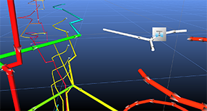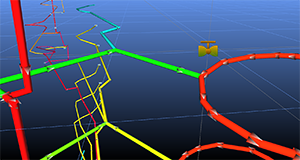 Objects can be copied, much in the same way as the Move function. A pipe can be ‘grabbed’ with the mouse and ‘dropped’ in a new location, or the pipe can be clicked and manually copied with new coordinates. In addition, a group of pipes can be selected with the Select button, or by drawing a fence around the pipes, and then clicking or dragging one of the selected pipes.