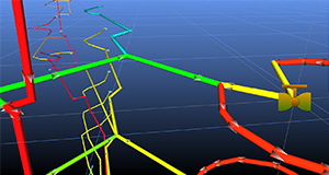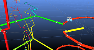 To simplify construction of pipes and channels, all drawing, moving and copying of pipes and channels initially defaults to the horizontal Edit Plane, regardless of the orientation of the view screen. To assist the user further, pipes and channels being drawn or moved will automatically ‘click’ and join to objects under the mouse cursor, even if at different elevations or distances away.