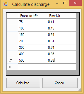 The discharge coefficients used for the simulation. It can be calculated from an array flow/pressure by clicking on the calculator column. See Sprays for more information.