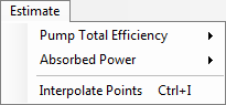 The tools menu contains a number of functions to assist in estimating pump Total Efficiency and pump Absorbed Power if either one is unavailable.