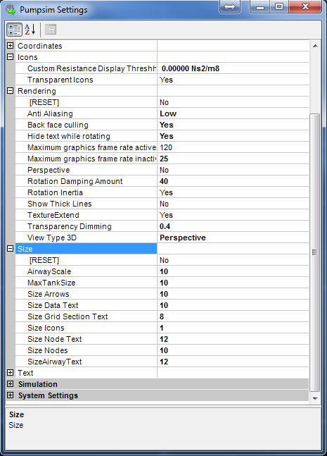 Fig. 5.2.6: The Rendering menu within the Pumpsim™ settings window.