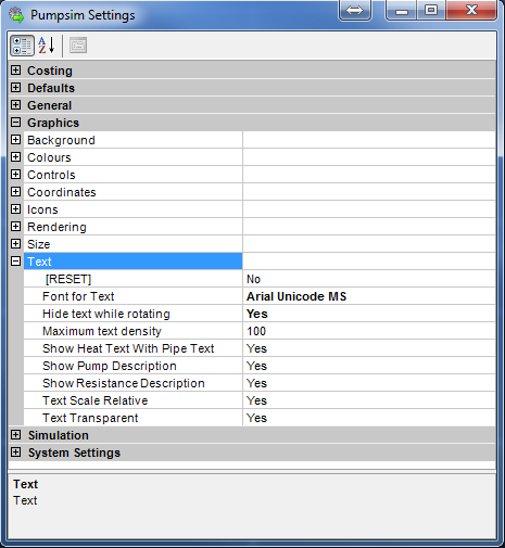Fig. 5.2.8: The text menu within the Pumpsim™ settings window.