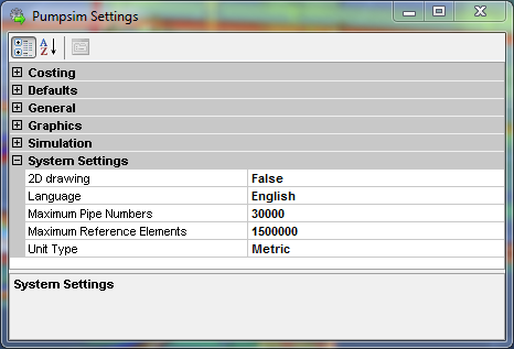 Fig. 5.2.11: The System Settings menu in Pumpsim™ settings window, that controls overarching features of the program.