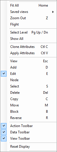 The popup menu, activated at any time by a right mouse click, provides a useful collection of commonly used functions. While most of the functions are also available from the toolbar or top menu, the popup feature can save considerable time as the mouse cursor is not required to return to the top of the page when a new function is selected.
