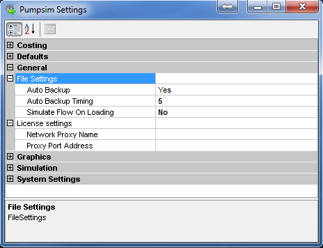 - Auto Backup – Forces Pumpsim™ to make a backup of the current model file at regular intervals. If the program crashes, or is forcibly exited, the backed up model will be loaded automatically the next time Pumpsim™ is run.