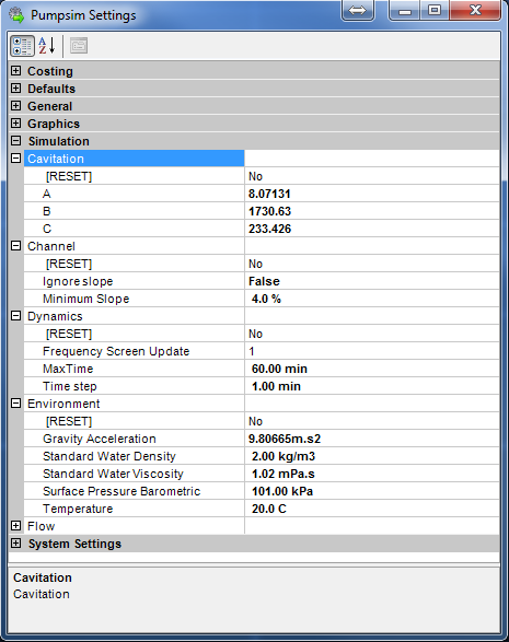 - Simulate cavitation – Enable or disable showing warning for cavitation.