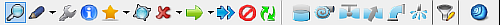 Searches for specific items within a ventilation model. Pressing the ‘searchlight’ icon directly, repeats the previous find action. Pressing the submenu arrow next to the icon, activates the find submenu as shown below.